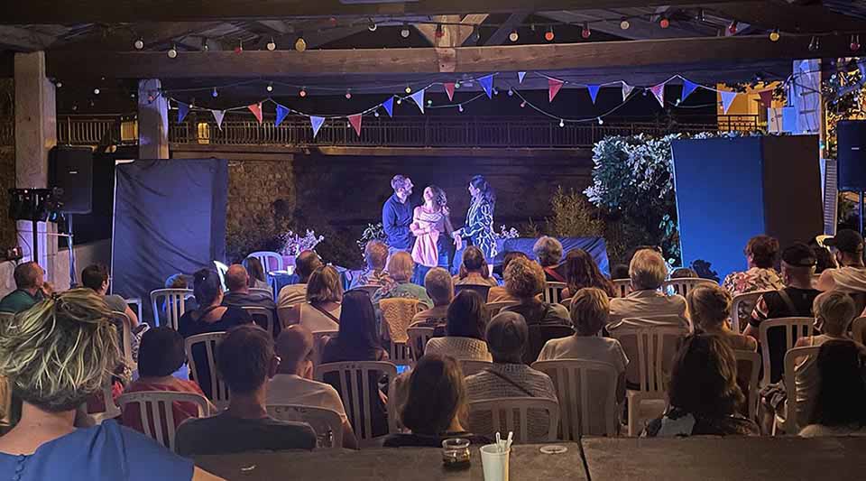 Soirée estivale avec la comédie rocambolesque Superstichieuse composée de Claudia, Julie, Alex et Bertrand.