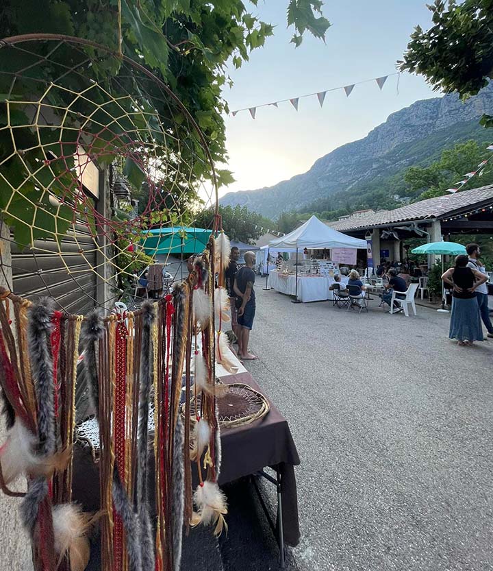 Marché artisanal nocturne et animation musicale avec Pauline.