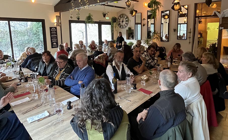 Repas des anciens à l'auberge du vieux moulin. Amitiés et convivialité étaient au rendez-vous. Merci à tous et merci aux Lolos pour cet excellent repas !