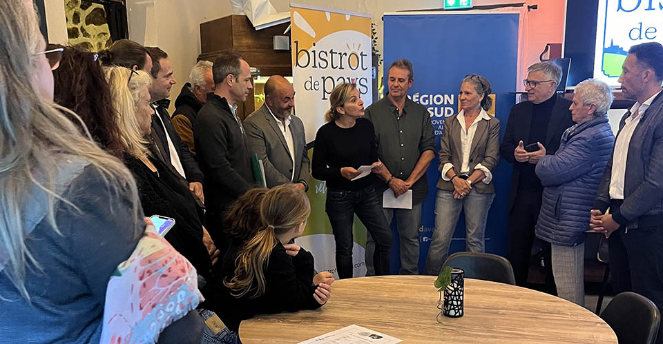 Remise de l'enseigne "Bistrot de pays" à l'auberge Le Vieux Moulin, en présence de nombreuses personnalités.