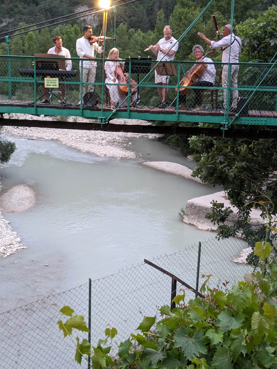 A l'occasion de la fête de la musique, un concert a été donné. 5 musiciens (basson, flûte, piano, violoncelle et voix) ont interprété plusieurs oeuvres musicales depuis la passerelle.