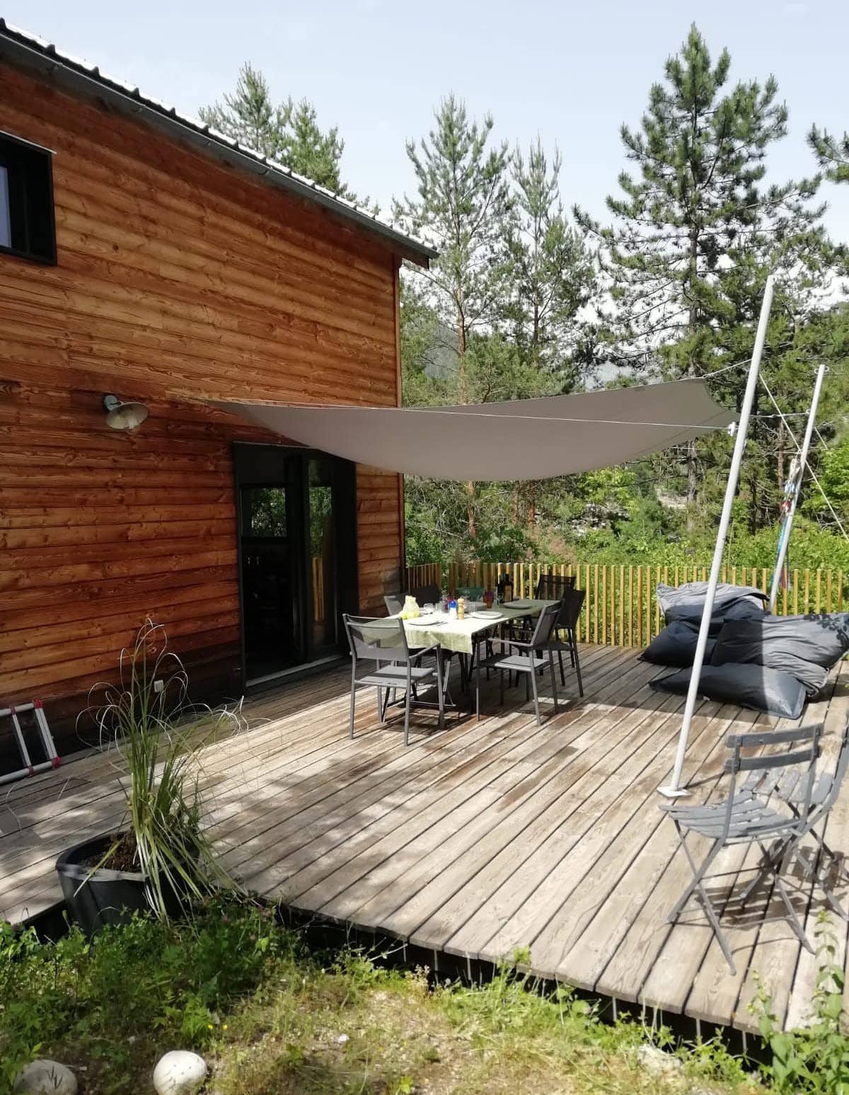 Pour des vacances de rêve, à 1h de Nice, dans la sublime vallée de l'Estéron... une maison en bois de 130m2, cachée dans les pins, entourée de verdure, à 300m de la rivière couleur lagon.