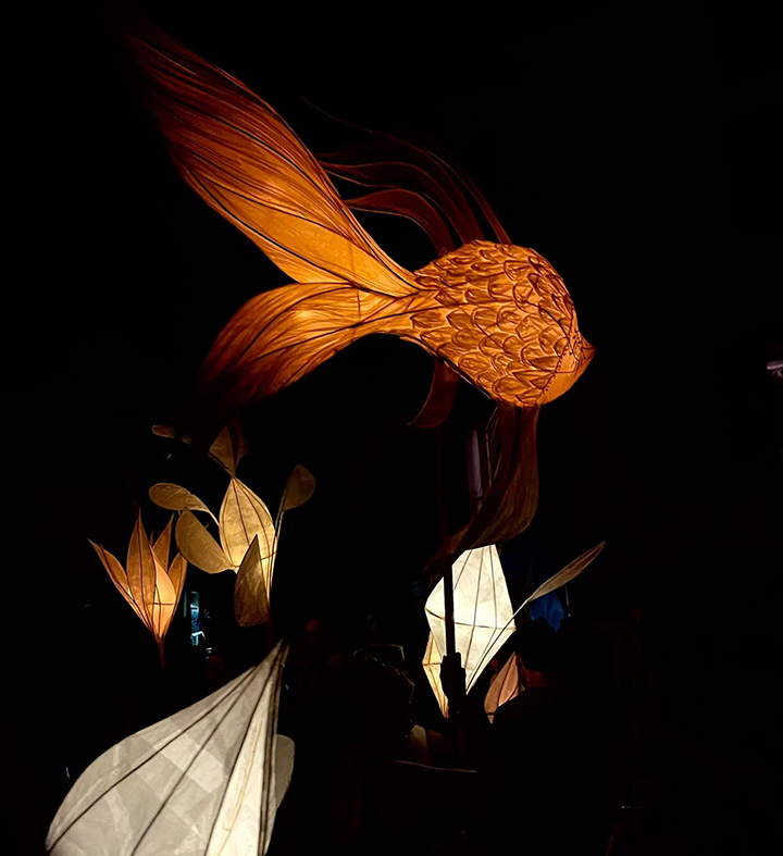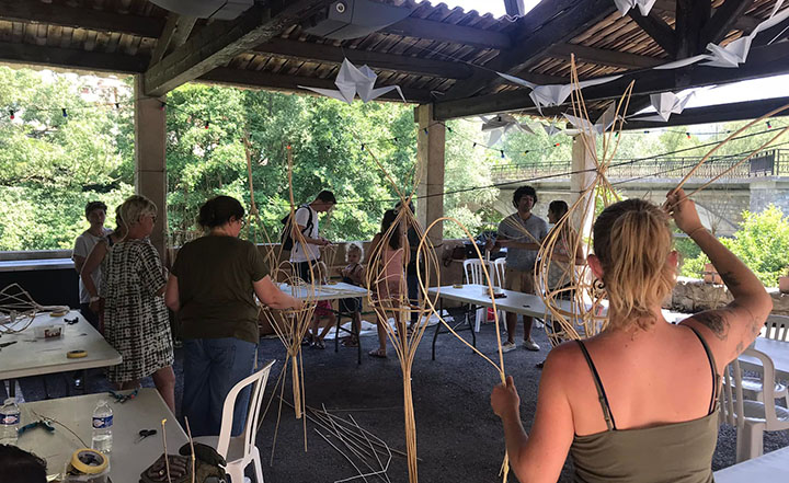 Atelier de préparation des lampions pour la déambulation prévue le lendemain soir.