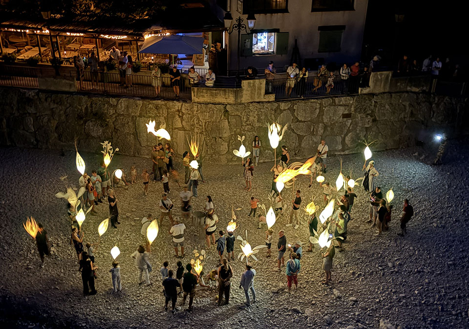 Déambulation de lanternes lumineuses au son de la Batucada.